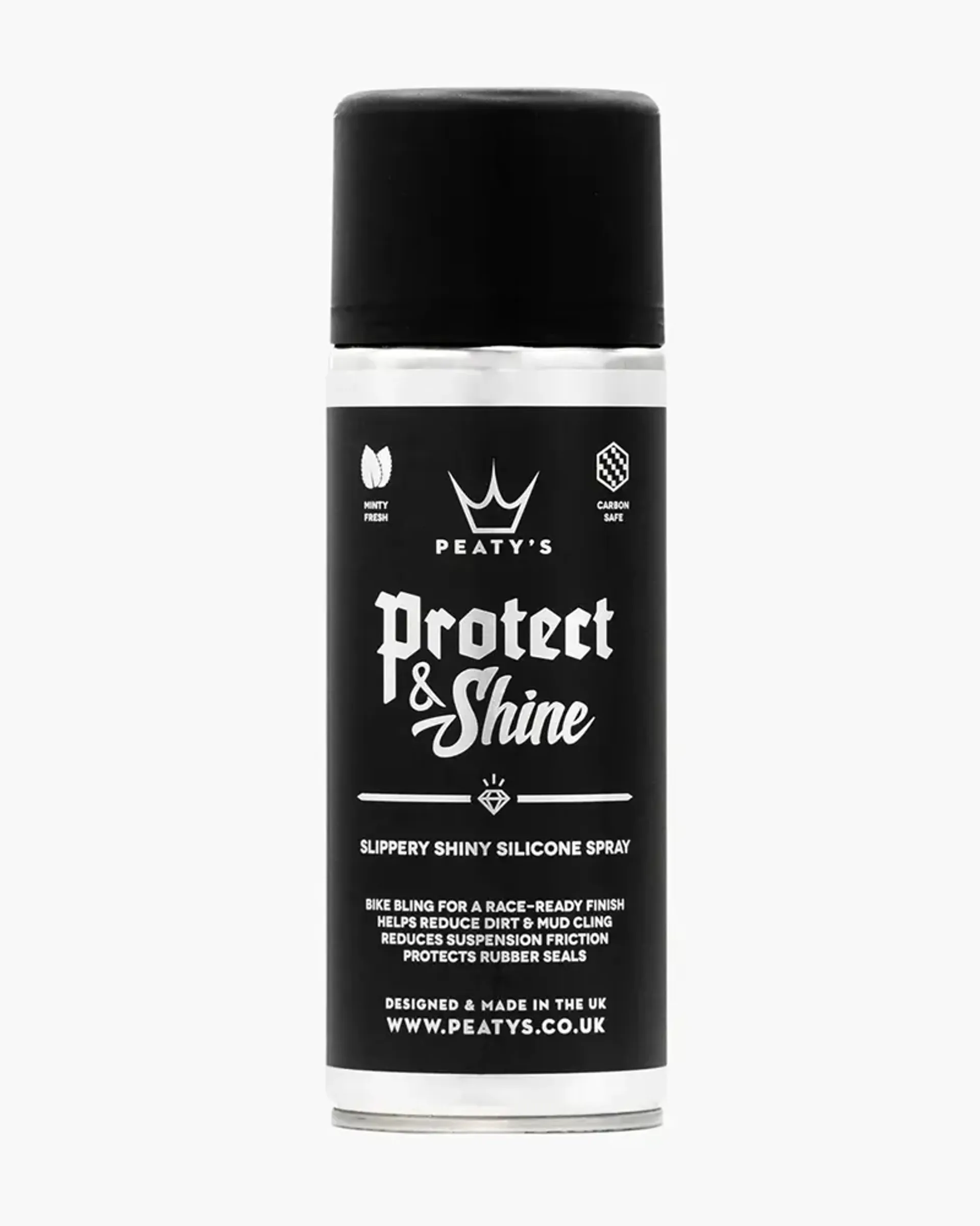 Peaty's Protect & Shine brings your bike back to a race-ready finish. Spray onto paints, metals, plastics or carbon parts to reduce friction and mud.